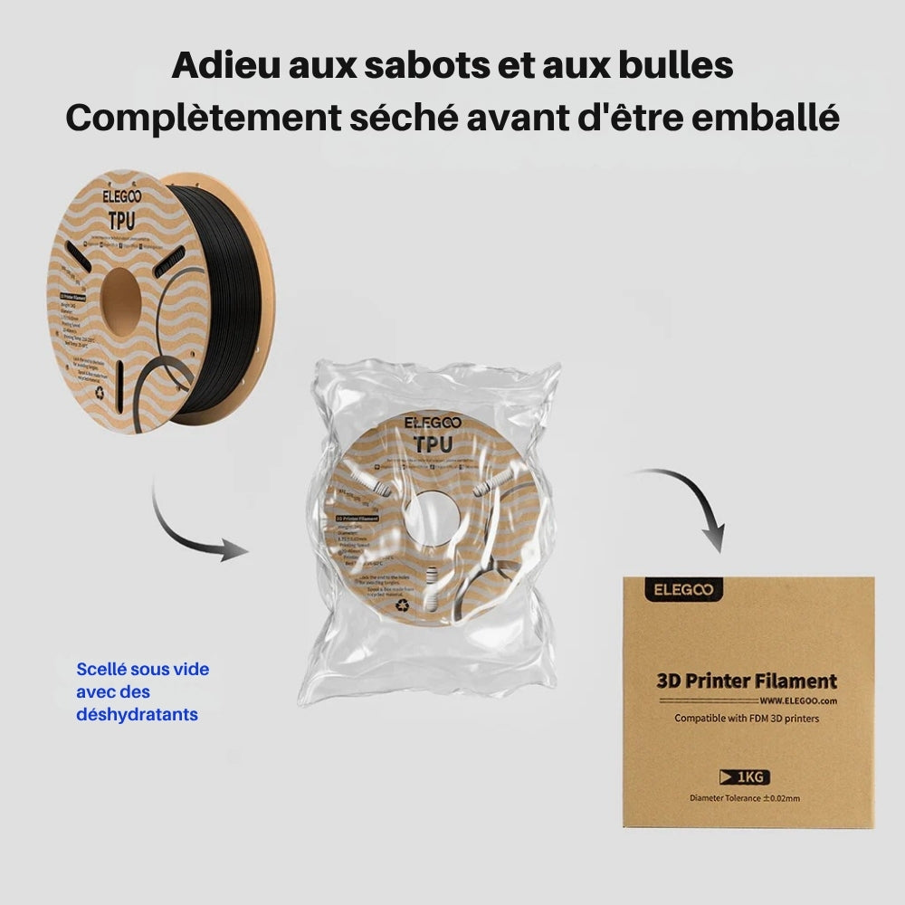 Faites passer vos impressions TPU au niveau supérieur avec l’Elegoo Rapid TPU 95A, capable d’imprimer 3 fois plus vite que le TPU 95A standard pour des résultats rapides et sans obstruction à chaque impression.